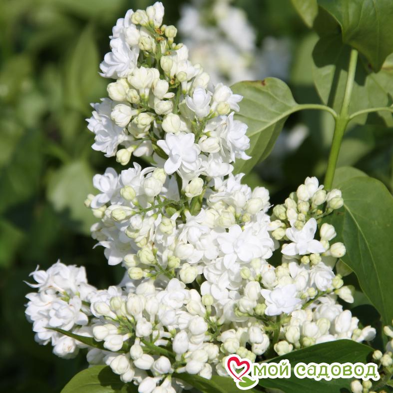 Бутоны имеют округлую форму. Их окраска зеленоватая. Данная сирень считается крупноцветковой. Диаметр цветков составляет в среднем по 2,5 сантиметра. Все они являются махровыми. В цветке имеется не более десяти лепестков. Они овальные, заостренные, винтообразно-изогнутые. Раскрывшиеся цветки обладают белой окраской. Растительность отличается интенсивным душистым ароматом.